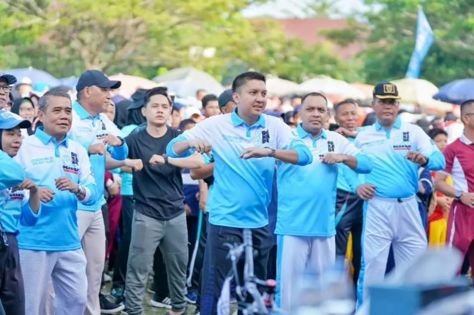 Ogan Ilir, Sumsel9.com – Bupati Ogan Ilir Panca Wijaya Akbar S.H Bersama Wakil Bupati H. Ardani S.H M.H didampingi Ketua TP PKK OI Ibu Tikha Alamsjah Panca Wijaya, B.A (Hons), Ketua I TP PKK OI Ibu Hj Faizah Ardani, Forkopimda, Sekda OI Menyelenggarakan Jalan Santai dan Senam Bersama dalam Rangka Peringatan HUT Kabupaten Ogan Ilir ke-XX (20) Tahun 2024. Jum’at (06/01/2024) Bertempat di KPT Tanjung Senai Indralaya.