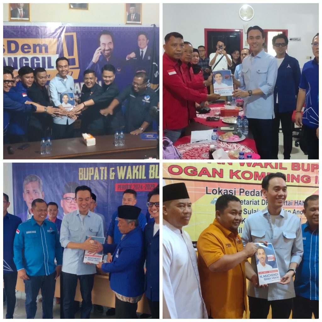 Ogan Komering Ilir, Sumsel9.com – Wakil Ketua DPRD Provinsi Sumsel H. Muchendi Mahzareki memantapkan langkah untuk maju pada Pilkada Kabupaten Ogan Komering Ilir (OKI). Hal ini dibuktikan oleh Muchendi yang telah mengembalikan formulir pendaftaran bakal calon bupati di kantor DPC Partai Nasdem OKI, DPC PDIP, DPD PAN dan terakhir Muchendi mengembalikan formulir di Partai Hanura Senin (6/5/2024).