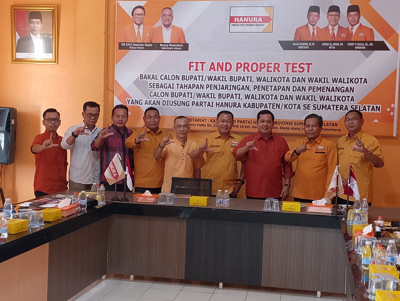 PALEMBANG, sumsel9.com – Calon Bupati Banyuasin H Askolani SH MH, mengikuti Fit And Proper Tes di Kantor DPD Hanura Palembang, Senin (20/5/2024).