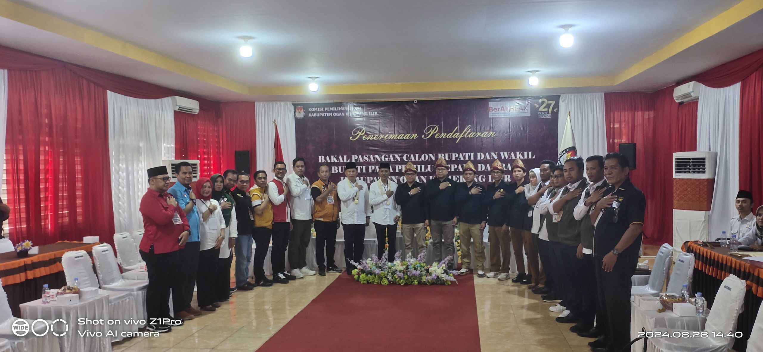Usai Deklarasi, Pasangan Calon (Paslon) Bupati dan Wakil Bupati Ogan Komering Ilir (OKI), HM. Dja’far Shidiq – Abdiyanto (JADI) mendaftar ke Komisi Pemilihan Umum (KPU) Kabupaten OKI. Kayuagung, Rabu (28/8).
