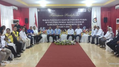Usai Deklarasi, Pasangan Calon (Paslon) Bupati dan Wakil Bupati Ogan Komering Ilir (OKI), H. Muchendi – Supriyanto (MURI) mendaftar ke Komisi Pemilihan Umum (KPU) Kabupaten OKI. Kayuagung, Kamis (29/8/2024).