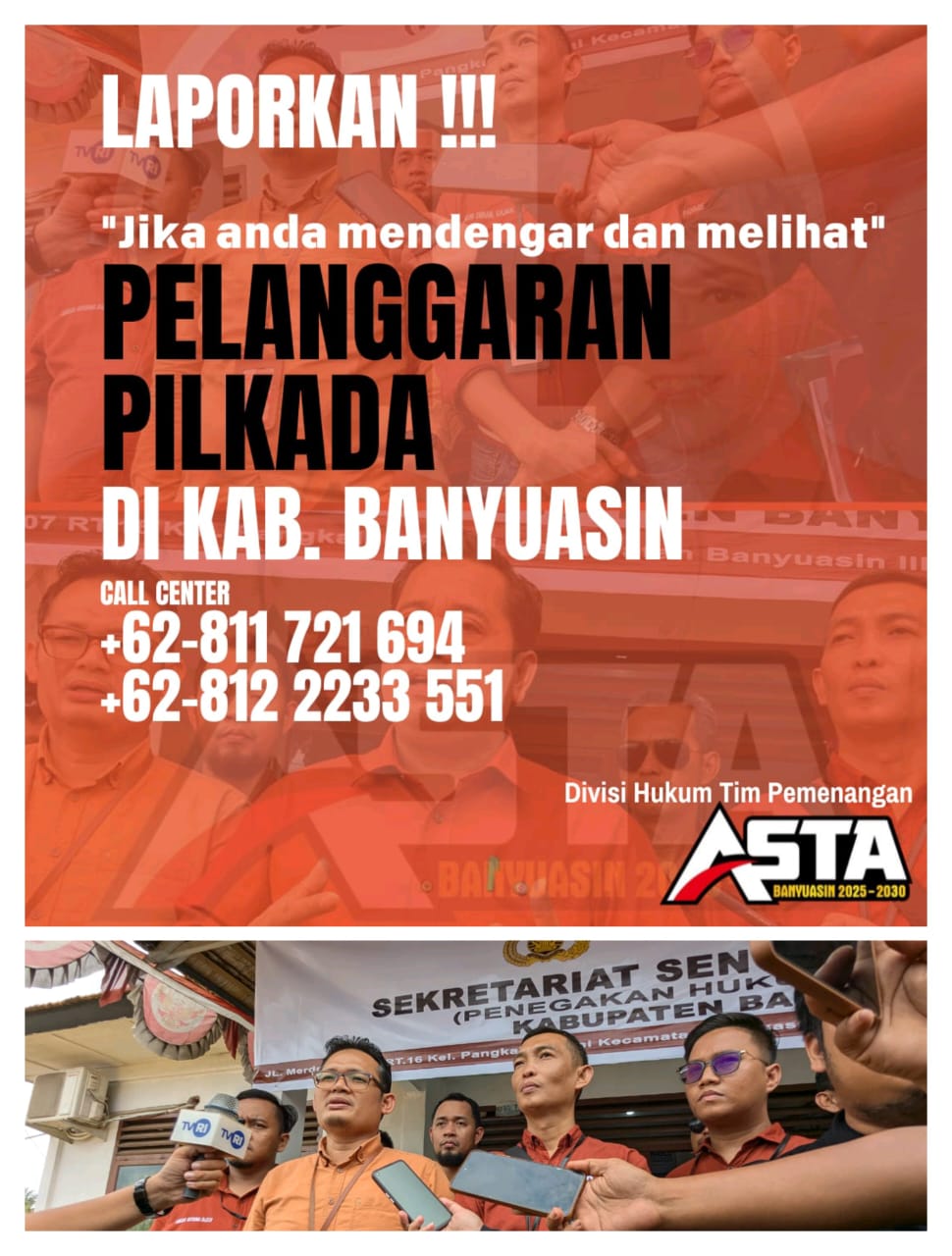 Dukung Patroli Siber Polres Banyuasin, Divisi Hukum Asta Luncurkan Call Center Pelanggaran Pilkada