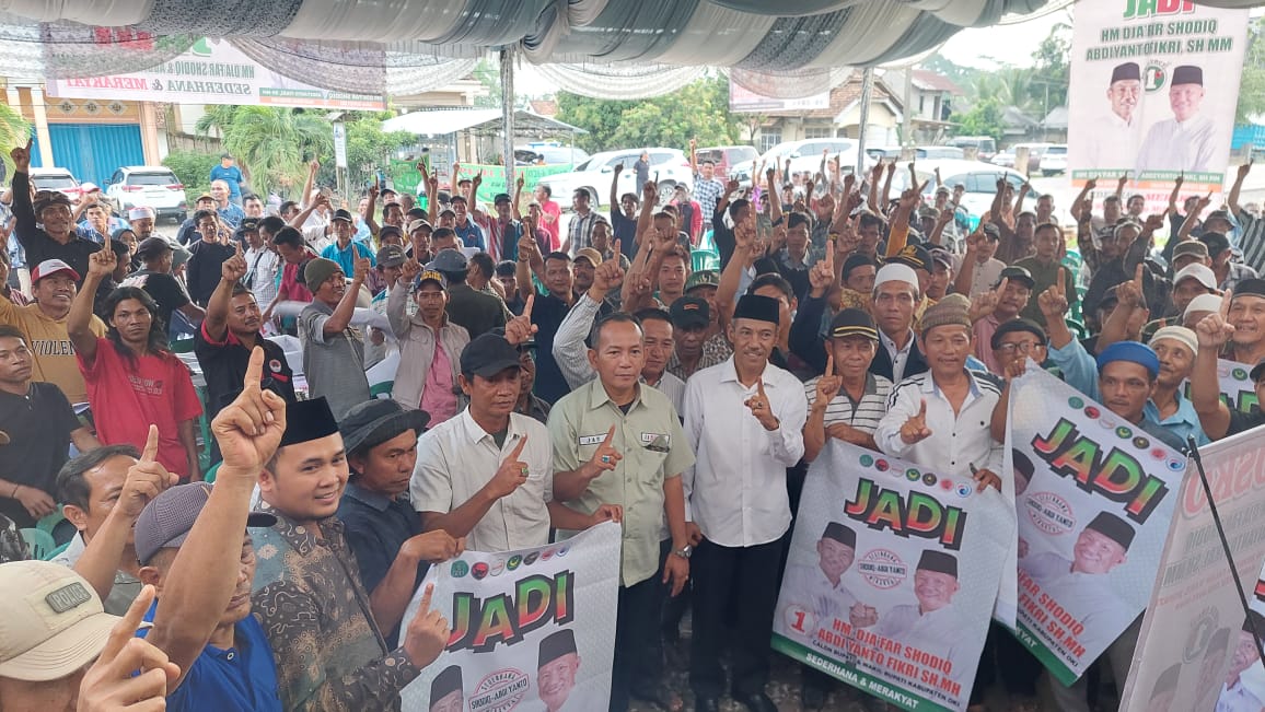 Sebanyak 350 anggota tim pemenangan pasangan calon Bupati dan Wakil Bupati OKI, HM Dja’far Shodiq dan Abdiyanto (JADI), dari 17 desa di Mesuji resmi dikukuhkan dalam acara yang berlangsung di Posko Pemenangan Desa Surya Adi, Kecamatan Mesuji.