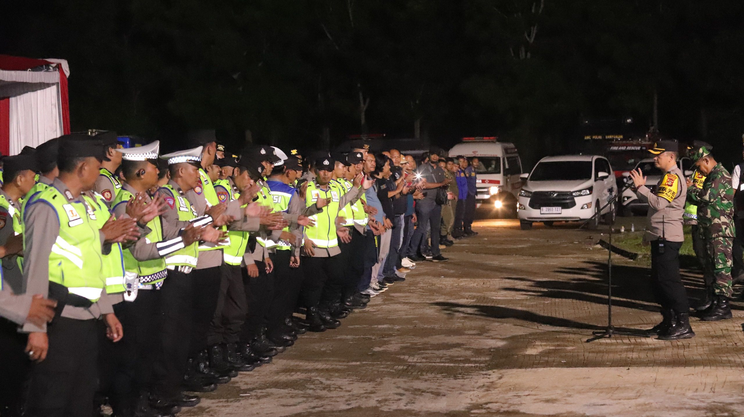 AKBP Ruri Prastowo SH SIK MIK selaku Kapolres Banyuasin mengerahkan sebanyak 300 personil untuk melaksanakan pengamanan Debat Publik Kandidat Paslon Bupati di aula sedulang setudung kab banyuasin, Rabu (9 Oktober 2024)