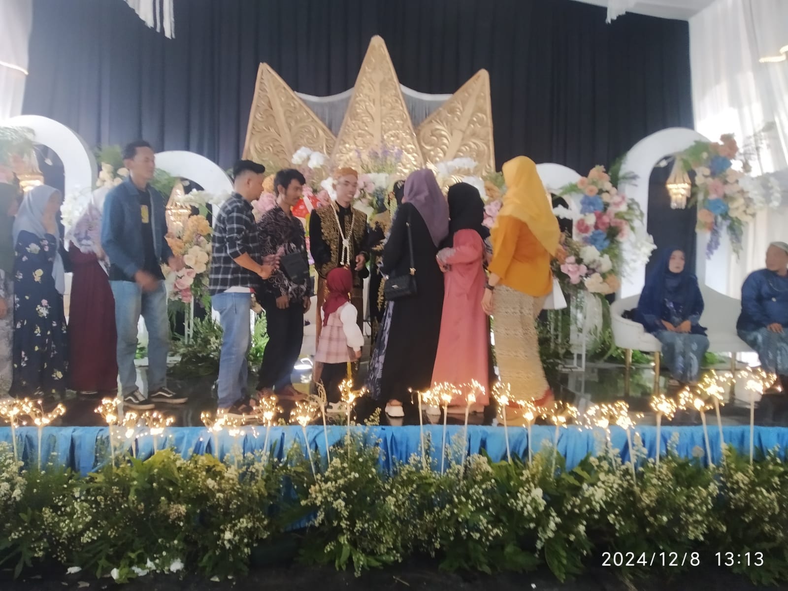 Bertempat di Lapangan RT010/029 Bahagia, Babelan. Acara resepsi di adakan (8/12/2024), diiringin oleh Campursari NEWSoponyono, dan biduan Campursari. Acara begitu meriah tamu undangan silih berganti berdatangan untuk memberikan doa restu untuk kedua mempelai. ada yang ikut mengumbangkan sebuah lagu demi memeriahkan acara, ada yang request lagu kesayangan nya untuk dinyanyikan.