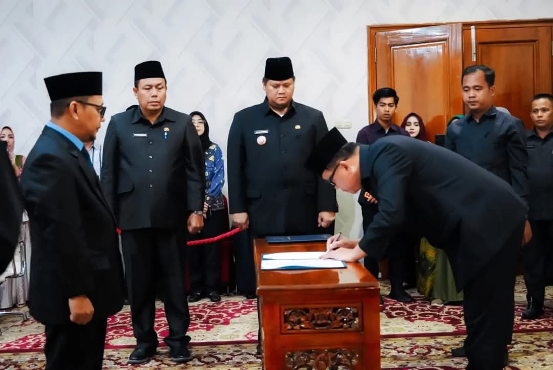 Banyuasin. Sumsel9.com – Penjabat Bupati Banyuasin Muhammad Farid, S.STP., M.Si melantik dan mengambil sumpah jabatan Hendra Gunawan, ST., MM. sebagai Direktur Perusahaan Umum Daerah Air Minum Tirta Betuah Kabupaten Banyuasin masa jabatan 2025 – 2029, bertempat di Ruang Rapat Guest House Rumah Dinas Bupati Banyuasin, Kamis (16/01/2025).