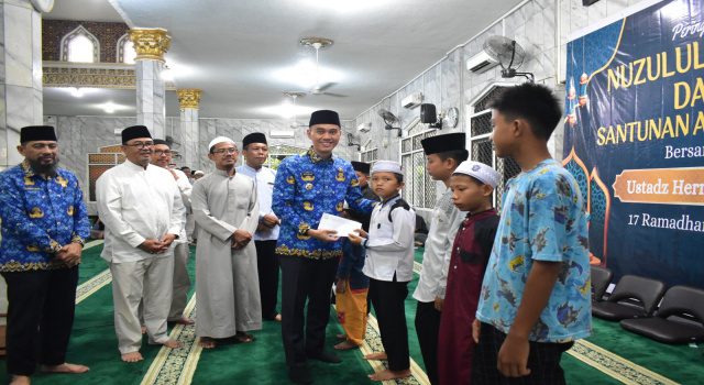 “Kita bersyukur karena pada kesempatan ini Masjid Agung Sholihin bisa kembali mengadakan kegiatan santunan kepada anak yatim dan piatu. Ini adalah bentuk kepedulian kita bersama, dan mudah-mudahan kegiatan ini terus berlanjut di tahun-tahun mendatang,” ujar Bupati Muchendi dalam sambutannya, Senin (17/3/25)