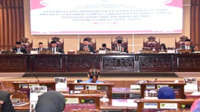 Palembang, Sumsel9.com – Dewan Perwakilan Rakyat Daerah Provinsi Sumatera Sulatan (DPRD Prov.Sumsel) dan Gubenur menyepakati rancangan awal Rencana Pembangunan Jangka Menengah Daerah (RPJMD) Provinsi Sumatera Selatan tahun 2025 s.d 2029, hal ini dituangkan dalam bentuk penandatanganan nota kesepakatan Bersama antara DPRD Prov.Sumsel dan Gubernur pada Rapat Paripurna XIII (13) hari ini (16/5).