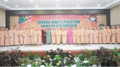 Muba, Sumsel9.com – Ketua Dharma Wanita Persatuan (DWP) Kabupaten Musi Banyuasin secara resmi mengukuhkan jajaran Pengurus DWP Kabupaten Musi Banyuasin untuk masa bhakti 2024–2029 dalam sebuah upacara yang berlangsung di Gedung Dharma Wanita Sekayu, Selasa (21/07/2025).