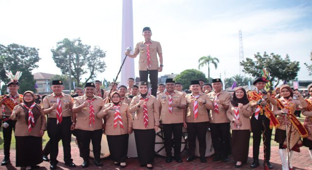Upacara dipimpin langsung oleh Bupati OKI H. Muchendi Mahzareki, S.E., M.Si, serta dihadiri oleh Dandim 0402 OKI Letkol Infantri Yontri Bakti, S.H., M.H., Kajari OKI H. Sumantri, S.H., M.H., Forkopimda Kabupaten OKI, para pembina dan anggota pramuka, serta tamu undangan lainnya.