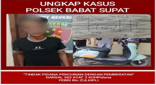 Muba, Sumsel9.com – Kepolisian Resor Musi Banyuasin (Polres Muba) kembali menunjukkan komitmennya dalam menjaga keamanan dan ketertiban masyarakat. Kali ini, Unit Reskrim Polsek Babat Supat berhasil mengamankan seorang terduga pelaku pencurian dengan pemberatan (Curat) bernama Febri (27), warga Desa Pinang Banjar Kecamatan Sungai Lilin, yang diduga melakukan aksi pencurian di Dusun V, Desa Suka Maju, Kecamatan Babat Supat, Kabupaten Muba.