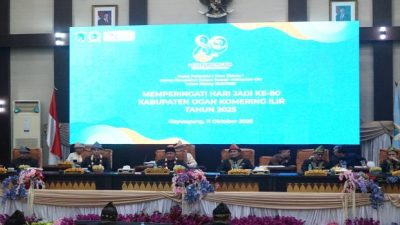 Kayuagung, Sumsel9.com – peringatan Hari Ulang Tahun (HUT) ke-80 Kabupaten Ogan Komering Ilir (OKI) dengan mengusung tema: “OKI Gas, Sinergi Kuat, Melaju Hebat.”, digelarnya Rapat Paripurna I Masa Sidang I Tahun Sidang 2025/2026, bertempat di Ruang Rapat Paripurna DPRD OKI, Kayuagung, yang di pimpin langsung oleh Ketua DPRD OKI.