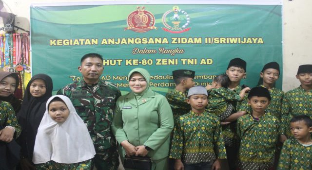 Palembang, Sumsel9.com – Kepala Zeni Kodam II/Swj Letnan Kolonel Czi Rahardian Fernandi, S.hub. Int memimpin rombongan anjangsana dalam rangka memperingati HUT Zeni TNI AD ke 80 tahun 2025 ke Panti Asuhan Ikhlas Berbagi yang berada di kelurahan Makrayu Palembang. Pada kegiatan tersebut Kazidam didampingi oleh ibu Ketua Persit Ranting 3 ZI Cabang IV Slogdam bersama pengurus dan Perwira staf Zidam II/Swj.