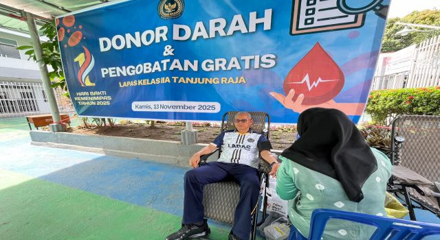 Tanjung Raja, Sumsel9.com — Dalam semangat memperingati Hari Bakti Kementerian Imigrasi dan Pemasyarakatan (Kemenimipas) yang ke-1, Lembaga Pemasyarakatan (Lapas) Kelas IIA Tanjung Raja menyelenggarakan kegiatan Donor Darah dan Pemeriksaan Kesehatan Gratis bagi Petugas, Ibu Dharma Wanita, Pengunjung, serta Warga Binaan Pemasyarakatan.