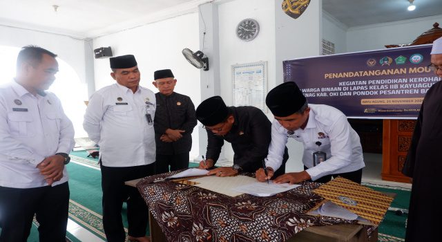 Melalui penandatanganan Perjanjian Kerja Sama (PKS) dengan Kementerian Agama (Kemenag) Kabupaten Ogan Komering Ilir dan Pondok Pesantren Bait Al-Qur’an yang dihadiri langsung oleh Kabid Pelayanan dan Pembinaan Kantor Wilayah Direktorat Jenderal Pemasyarakatan Sumatera Selatan, Misbahuddin. Layanan pembinaan keagamaan kini diperkuat dengan program yang lebih terstruktur dan berkelanjutan. Selasa (25/11).