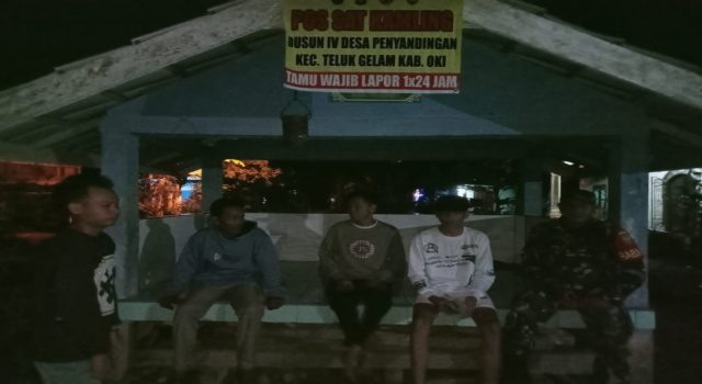 Teluk Gelam, (OKI), Sumsel9.com – Babinsa Koramil 402-01/Tg Lubuk bersama unsur masyarakat melaksanakan patroli keamanan lingkungan (Siskamling) gabungan di desa Penyandingan, kecamatan Teluk Gelam, kabupaten Ogan Komering Ilir, Jumat malam (26/12/2025).