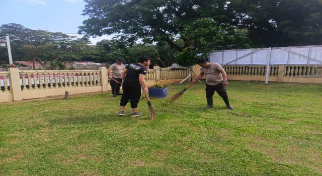 Pampangan, Sumsel9.com – Dalam rangka menjaga kebersihan serta menciptakan lingkungan kerja yang sehat dan nyaman, Polsek Pampangan melaksanakan kegiatan kerja bakti (kurve) di seputaran Mako dan Asrama Polsek Pampangan, Kamis (5/2/2026).