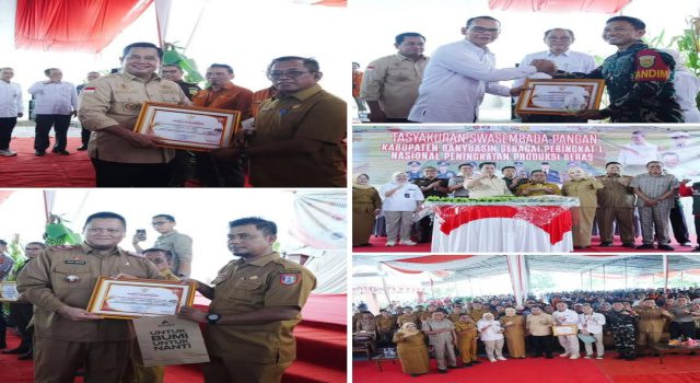 Pangkalan Balai, Sumsel9.com — Wujud rasa syukur atas Penghargaan Peringkat I Nasional Peningkatan Produksi Beras, Pemerintah Kabupaten Banyuasin menggelar Tasyakuran Swasembada Pangan Sebagai Peringkat I Nasional Peningkatan Produksi Beras di Halaman Kantor Dinas Tanaman Pangan dan Holtikultura Banyuasin, Senin (9/2/2026).