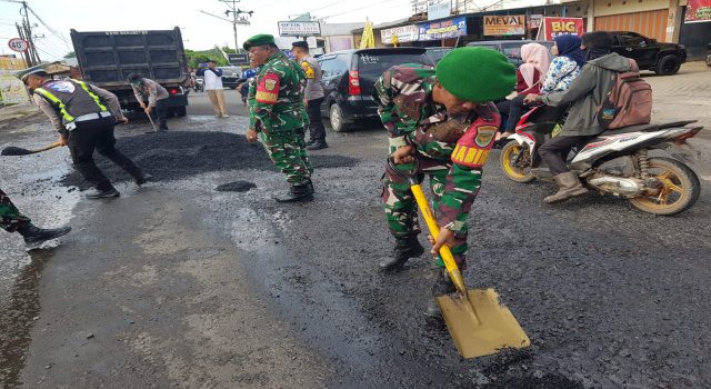 Kayuagung, Sumsel9.com – Wujud nyata dukungan terhadap program Presiden Republik Indonesia Gerakan Indonesia ASRI Kodim 0402/OKI bersama Polres OKI melaksaksanakan aksi perbaikan jalan, Sabtu (28/2/2026).