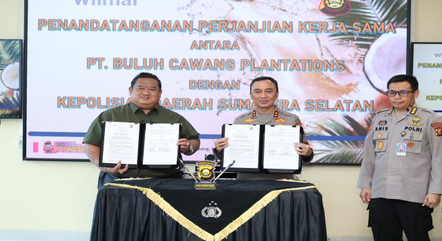 Palembang, Sumsel9.com — Kapolda Sumatera Selatan Irjen Pol Dr. Sandi Nugroho, S.I.K., S.H., M.Hum. memimpin langsung penandatanganan perjanjian kerja sama antara Polda Sumsel dan PT Buluh Cawang Plantations, Kamis (6/3/2025) di Ruang Video Conference Gedung Presisi Polda Sumsel, Palembang.