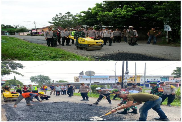 Kayuagung, Sumsel9.com – Kepolisian Resor (Polres) Ogan Komering Ilir kembali menunjukkan kepeduliannya terhadap lingkungan dan keselamatan masyarakat melalui kegiatan pembersihan lingkungan serta penambalan jalan berlubang di depan Apotik Meilani, Jalan H. Nawawi RD Intan, Kabupaten OKI.