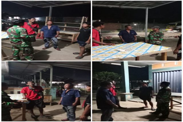 Personil Babinsa beserta Masyarakat, melaksanakan patroli keamanan lingkungan yang dimulai pukul 22.28 Wib, menyisir pemukiman penduduk sambil memeriksa keadaan setempat untuk memastikan situasi aman dan kondusif.