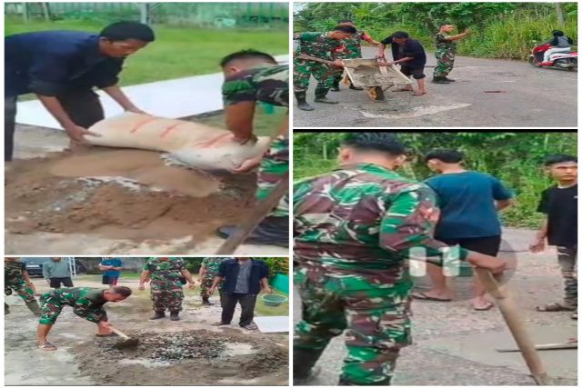 Kegiatan tersebut dipimpin langsung oleh Danramil 402-03/SP Padang Kapten CKE Kurniawan bersama anggota Koramil dan warga setempat yang secara gotong royong memperbaiki kondisi jalan yang mengalami kerusakan.