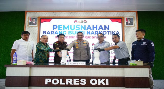 Kayuagung, Sumsel9.com – Polres Ogan Komering Ilir (OKI) memusnahkan barang bukti narkotika jenis sabu seberat satu kilogram yang merupakan hasil pengungkapan kasus peredaran narkotika di sejumlah wilayah, yakni Kecamatan Tulung Selapan, Lempuing Jaya, dan SP Padang, Kabupaten OKI, Kamis (16/4/26).
