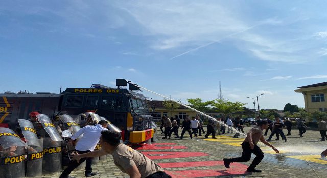 Kayuagung, Sumsel9.com – Simulasi penanganan aksi unjuk rasa yang berpotensi anarkis digelar Polres Ogan Komering Ilir (OKI) di Lapangan Mapolres OKI, Jumat (17/4/2026) pagi. Kegiatan ini menjadi bagian dari latihan Sistem Pengamanan Kota (Sispamkota) guna memastikan kesiapan personel dalam menghadapi dinamika situasi di lapangan.