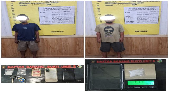 Palembang, Sumsel9.com — Polda Sumatera Selatan melalui Satresnarkoba Polrestabes Palembang kembali menunjukkan ketegasan dalam memberantas peredaran gelap narkotika, khususnya di kawasan yang berdekatan dengan lingkungan pendidikan. Dua orang tersangka pengedar narkotika jenis sabu berhasil diamankan di kawasan Jalan Taqwa Mata Merah, Kelurahan Sei Selincah, Kecamatan Kalidoni, tepat di depan SMA Negeri 7 Palembang, pada Jumat malam, 17 April 2026.