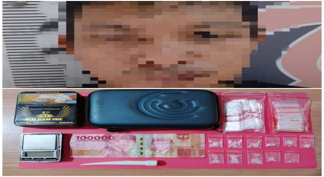 Saat petugas tiba di lokasi, tersangka diketahui sedang berada di dalam kamar mandi. Penggeledahan yang dilakukan secara menyeluruh mengungkap satu kaleng kotak rokok yang berada di lantai kamar mandi. Di dalamnya ditemukan 11 paket narkotika jenis sabu dengan berat bruto 2,08 gram.